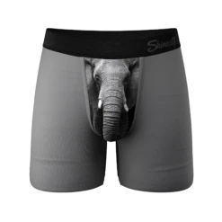Did you know that an elephant trunk is the most sensitive organ of all mammals? That’s pretty neat. Did you also know that elephants have the longest male genitalia out of all mammals as well? It can reach up to 39 inches in length. That’s absurd. So we’ll just call this pair of elephant patterned Ball Hammock pouch underwear The 3rd Leg in hopes that you can channel that BEE (Big Elephant Energy).