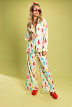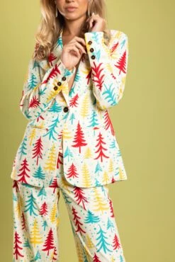 Any one of the beautiful pines on this women’s suit blazer would make the perfect Christmas tree. But don’t try to actually cut one down. This is just a piece of clothing on your body, and taking a chainsaw to one of these festive pines could do some real damage.