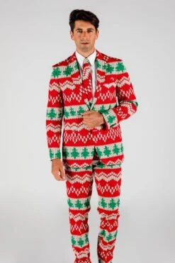 If you aren’t roasting your nuts on an open fire and enjoying a scotch filled holiday, this Christmas sweater suit is not for you. This Christmas suit is made only for manly men who sport a voice that makes a wolverine purr. It’s a red sweater suit so fine, it’ll make Sinatra look like a hobo. Ron Burgundy couldn’t have said it better, but we can’t name this suit the Ron Burgundy for copyright reasons. We’re going with the Red Ryder, so stay classy, San Diego (and every other major city we ship to because we are city non-binary).